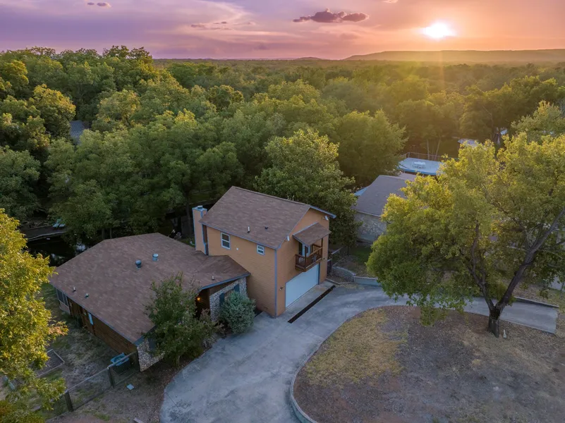 Cozy 2-bed, 2-bath home on Lake LBJ with 100+ feet of channel frontage. Features a screened-in porch, boat dock, PWC lifts, fireplace, master bedroom with full bath, walk-in closet and a balcony, and recent 2022 HVAC updates. 2-car garage with storage, circular drive for parking. Subdivision offers a homeowner's park and boat ramp. Home is situated in old grove of pecan trees. Ideal lakeside retreat for full time or weekend retreat. Short term rentals are allowed!