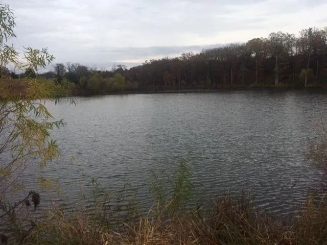 Land is open and wooded, house sits on hill overlooking lake. You can see the lake from the living room and an even better view from the pavilion behind the house!
