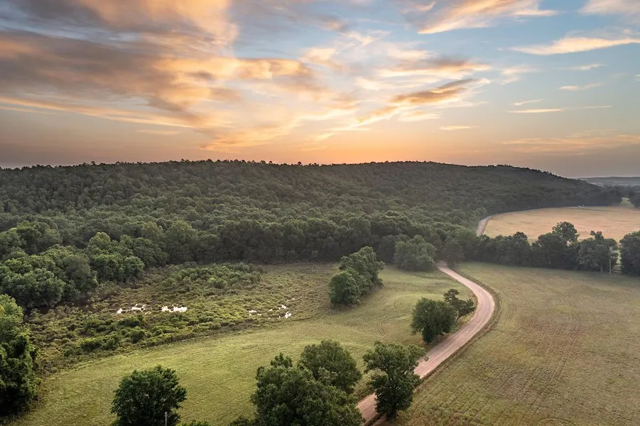 This ranch is about 60% pasture with a balance in mixed hardwoods and beautiful topography. The northern portion of the ranch is about 120 in elevation and is densely wooded with a lot of wildlife. The fences and cross fences are in good condition and each pasture has access to good water. French Prairie Road bisects the ranch and is a county gravel road that is well maintained.
