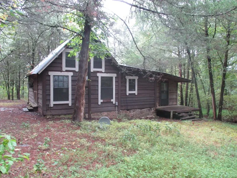 NESTLED IN THE WOODS! 1 1/2 Story cabin on 3.22 Acres. Comfortable enough for full time living or for a get-a-way. Enjoy the flowing stream &