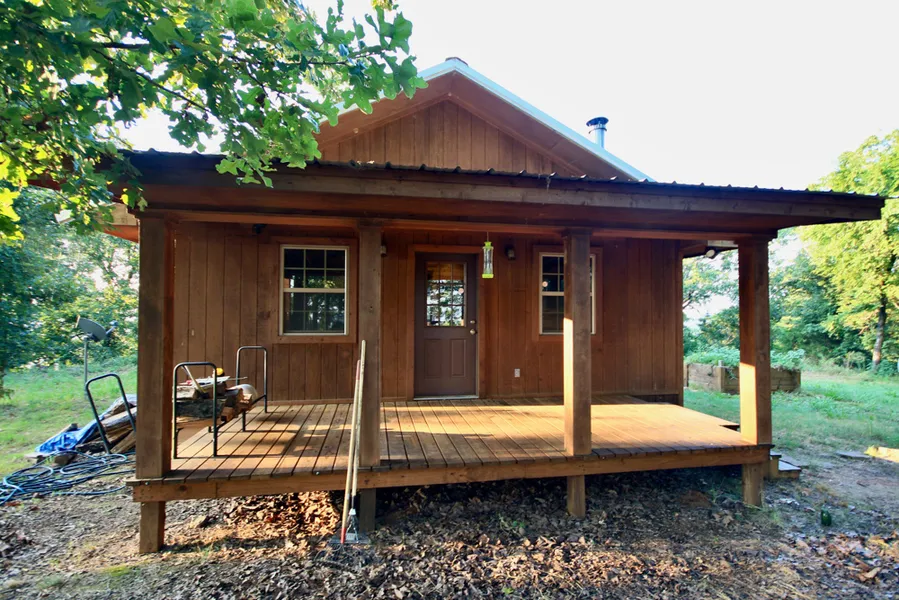 This is what everyone is looking for! The exquisite small cabin getaway with a view, perfect for your family weekends. This beautiful 864 square foot cabin sits atop a bluff overlooking the valley below. It has 1 bedroom, 1 bath, and a large open floor plan with vaulted ceilings for the living and kitchen area. There are front and back porches that are perfect for drinking coffee and watching the sunset or sunrise whichever you prefer. A rock fireplace with a King glass front wood-burning stove offers a romantic ambiance for those cold winter nights. There is a mini split for climate-controlled heat and air and it can be controlled remotely with a Cielo home remote thermostat. There is power and city water at the cabin and fiber internet is available but hasn't been hooked up to the cabin. The current systems are being run off of hot spot wifi and work great. The bathroom triples as the laundry room, master closet, and the bathroom of course. The cabin is wired for a security system, and has Ring Stick security cameras, on the front, side, and rear of the cabin. There is a 20-foot Conex box onsite that was newly refurbished in 2022, it has been industrially painted and is watertight. This would be perfect for your weekend getaways and would easily offer some additional rental income as an Airbnb. The property sits on 16.24 wooded acres with Earl Prairie Road frontage to the south and Cherokee WMA to the north allowing hunting and recreational access to an additional 2,000 acres. If you have been looking for a little getaway place you will not want to miss this one for sure. Please give Heath Martin a call to schedule your personal viewing of this great property.