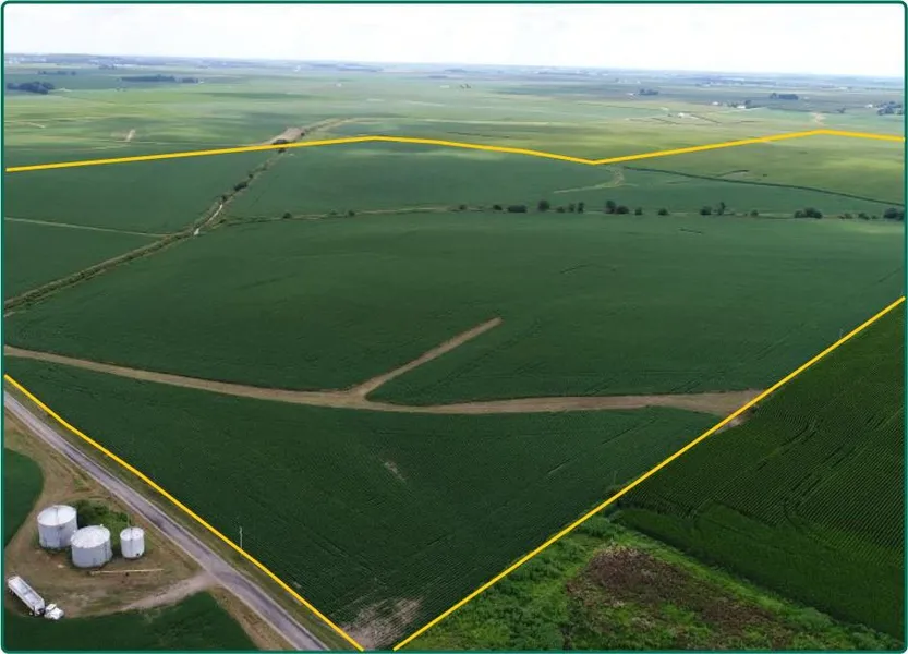 This level to gently rolling farm has 306.62 FSA crop acres with a P.I. of 135.10. There is a small shed on the north border of the southern half of property.
