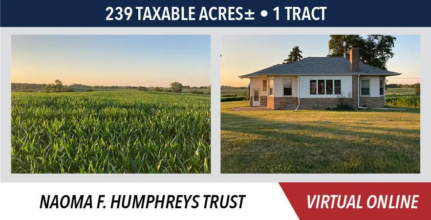 The property contains a total of 239 taxable acres and will be sold in 1 tract. The farm offers a combination of productive tillable cropland, pasture, and timber providing exceptional recreational opportunities. The property is also improved with a beautiful 1-story ranch home overlooking the farm.