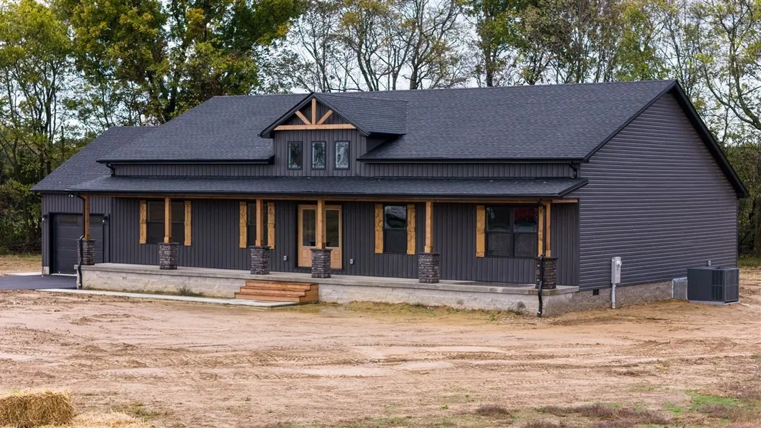 This beautiful new construction modern farmhouse is officially complete and ready to welcome you home. Situated on 1.02 acres at the end of a quiet cul-de-sac, this home blends timeless charm with thoughtful, modern design. Step inside to an open and inviting floor plan featuring luxury vinyl plank flooring throughout. The kitchen truly serves as the heart of the home, showcasing custom cabinetry, granite countertops, and a spacious layout perfect for gathering and everyday living. The primary suite offers a peaceful retreat with a spa-inspired walk-in shower, while additional bedrooms provide comfort and flexibility for guests, family, or a home office. Enjoy covered front and back porches designed for slow mornings, evening conversations, and taking in the quiet beauty of the countryside. A 2-car garage completes the home, offering convenience and extra storage.