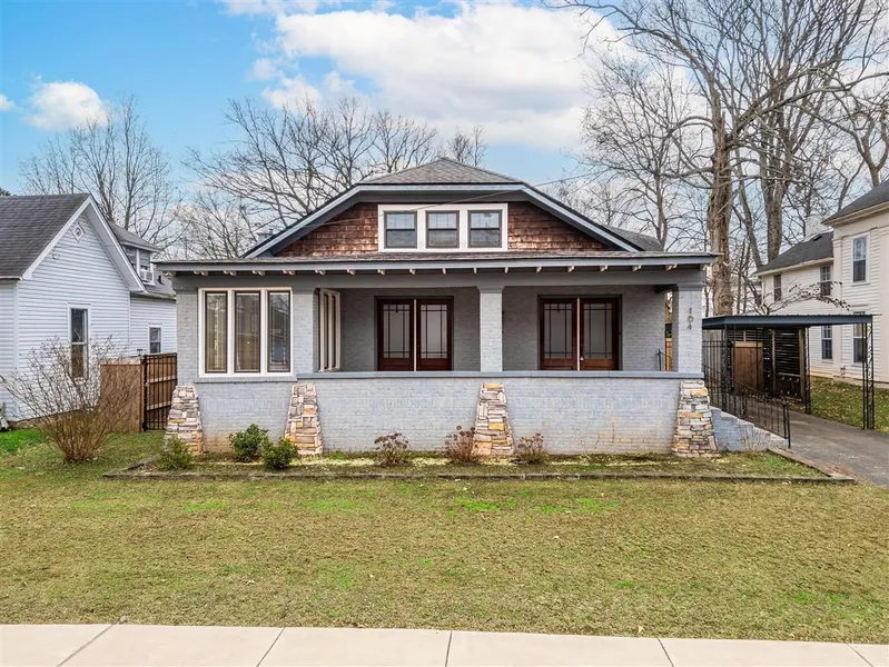 Step into timeless charm with this beautifully preserved circa 1925 painted brick home, where historic character meets everyday comfort. This inviting residence offers 2 bedrooms and 1 full bathroom, thoughtfully laid out to highlight its classic appeal and warm atmosphere. Original hardwood floors flow through much of the home, complemented by tile flooring in the bathroom and kitchen for durability and style. The cozy living room features a fireplace, perfect for relaxing evenings, while the adjoining sunroom provides a light-filled retreat ideal for morning coffee or quiet afternoons. Entertain with ease in the formal dining room, and enjoy the functionality of the kitchen complete with a charming butler’s pantry, offering extra storage and prep space. Upstairs, a bonus area adds flexibility—perfect for a home office, studio, or additional storage. Outside, enjoy a covered front porch that invites you to slow down and savor the neighborhood, along with a carport, fenced-in backyard, and storage shed for added convenience. Rich in character and full of potential, this historic home is a wonderful opportunity to own a piece of the past while enjoying the comforts of today.