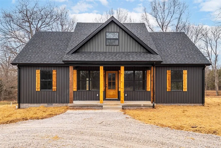 Welcome to this stunning new construction home that perfectly combines modern design with warm, rustic character. The striking black siding paired with beautifully stained wooden posts creates a bold and timeless exterior that immediately sets this home apart. From the moment you arrive, you’ll appreciate the craftsmanship and attention to detail that make this property truly special. Inside, the open and inviting floor plan offers 3 spacious bedrooms and 2 full bathrooms, thoughtfully designed for both comfort and functionality. The heart of the home is the kitchen, featuring elegant granite countertops, plenty of cabinet space, and a layout that flows seamlessly into the living and dining areas—perfect for entertaining guests or enjoying everyday family life. The finishes add a touch of luxury while maintaining a warm, welcoming feel. The primary suite provides a private retreat, offering ample space to unwind and relax, while the additional bedrooms are perfect for family, guests, or even a home office. Each bathroom is designed with modern fixtures and finishes that elevate the overall style of the home. Step outside to the deck on the back porch, where you can enjoy peaceful mornings, quiet evenings, or weekend gatherings. This outdoor space is ideal for grilling, entertaining, or simply taking in the fresh air and surrounding views. With brand-new construction, stylish finishes, and a thoughtful layout, this home offers low-maintenance living and move-in-ready convenience. It’s the perfect blend of modern elegance and cozy charm, making it an excellent choice for anyone looking for quality, style, and comfort all in one beautiful property.