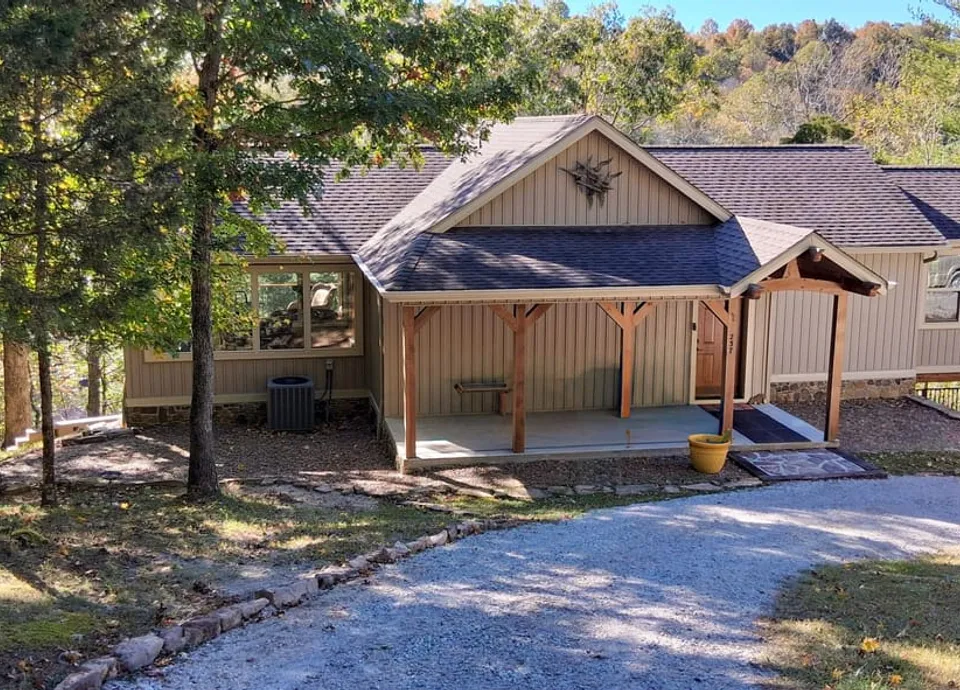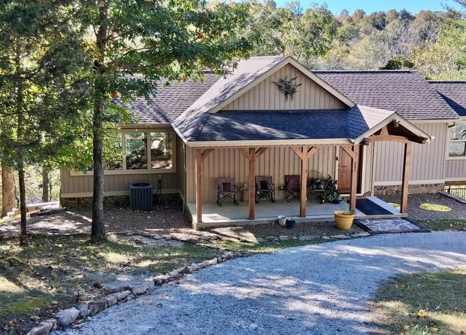 A custom-built 30x50 garage/shop with a bathroom rough-in provides versatile space for hobbies, storage, or future guest quarters. From there, custom 6/12 stairs lead to the private dock—passing a natural cave and seasonal waterfalls along the way. A 2015 Misty Harbor 22’ pontoon boat can convey, offering a seamless transition into lake life from day one.
