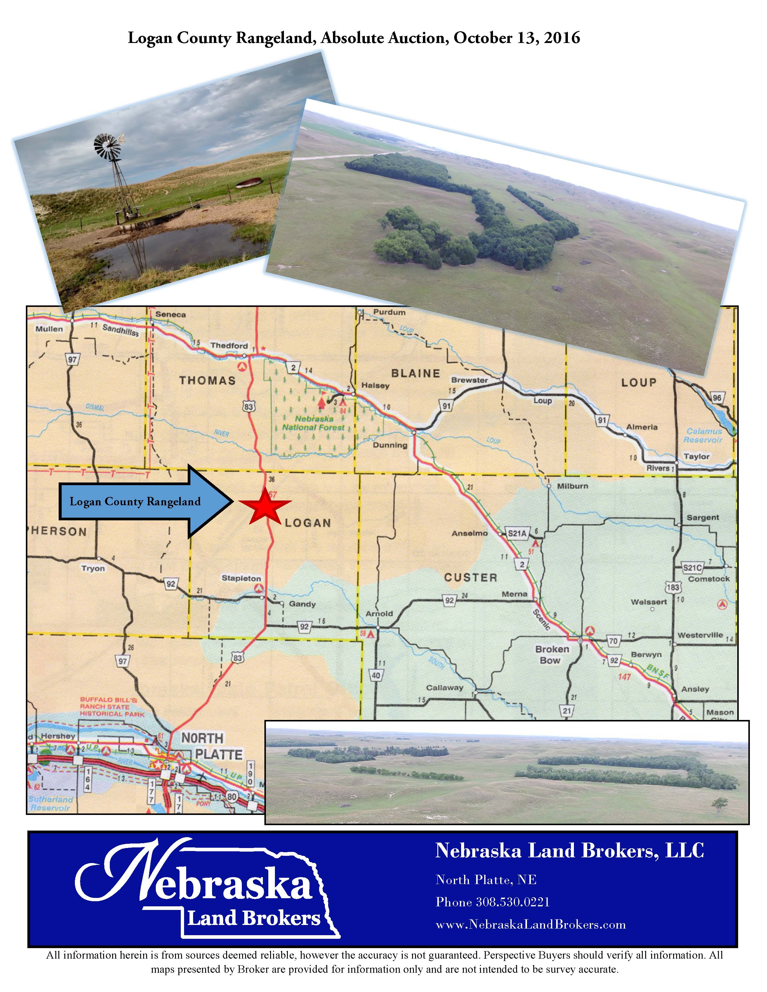 AUCTION TERMS: This is a cash sale not contingent upon financing. Buyer shall have financing secured before bidding at auction. 15% earnest money down with the signing of the Nebraska Land Brokers purchase agreement immediately following the auction. Closing of the sale to be at Buyers option of on or before December 30, 2016 or January 3, 2017. Additional detailed terms are available from broker or on NebraskaLandBrokers.com