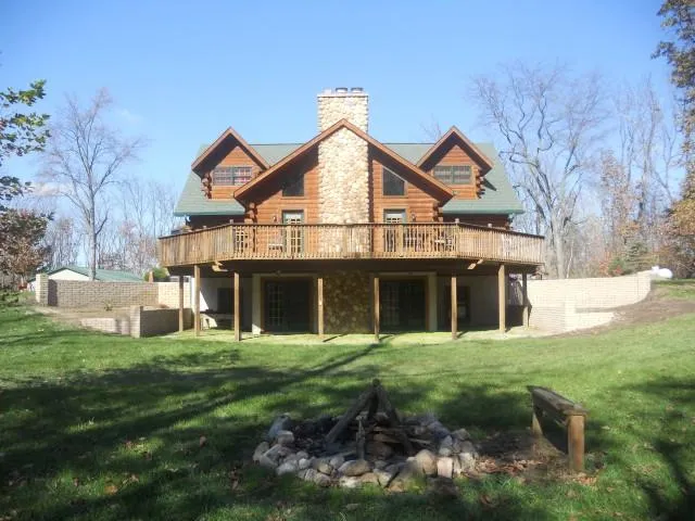 Hidden back a long lane on 30.175 acres is this absolutely, gorgeous log home with 3 BRs, 2.5 BAs, 2423 sq ft, a full walk-out basement with poured walls, & 3 car detached garage. There is pasture in place for horses, a three-stall horse barn, a turn-out barn, & 3 miles of trails through the mostly wooded acreage. The home is a Lincoln Log package with D-logs (flat wall inside/round log outside). The home has a 3-story stone fireplace that offers a wood-burning fireplace in the living room & a stove fireplace in the basement. A 2nd level balcony overlooks the living room. Large deck wraps around the rear of the home. The deck with retaining walls, walk-out basement, double french doors, and stone fireplace gives this home dramatic appeal! Other features: Mantis Plumbing System & hook-up for whole house generator.