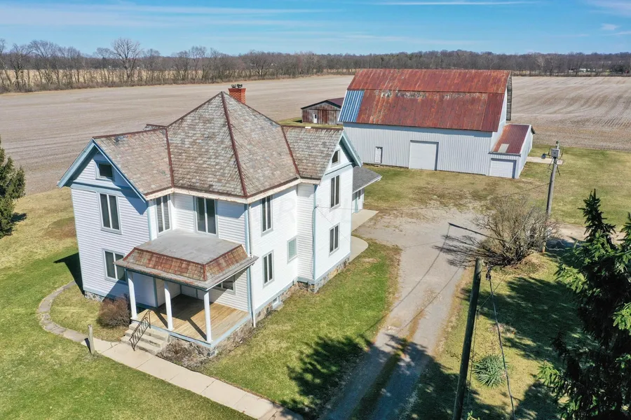 A Delightful Discovery... Impressive Updated farmhouse with tons of charm on 5 acres of land with pole building and Huge barn with over 5000 sq ft of interior space with electric. Over 2600 Sq Ft of living space with a partially finished basement with wood burner and walk-up attic that could be converted to extra space. Some original hardwoods floors, Back Staircase, Original Doors, woodwork, and Built-ins thru-out, Beautiful updated kitchen with Stainless Steel appliances, granite countertops, Butler's Pantry, and center island. Main Floor Master Bedroom/ Den and bath. 4 large bedrooms, large bath and laundry room on 2nd Floor. This Home has 5 bedroom and 3 full baths with so much to offer. Original Slate Roof