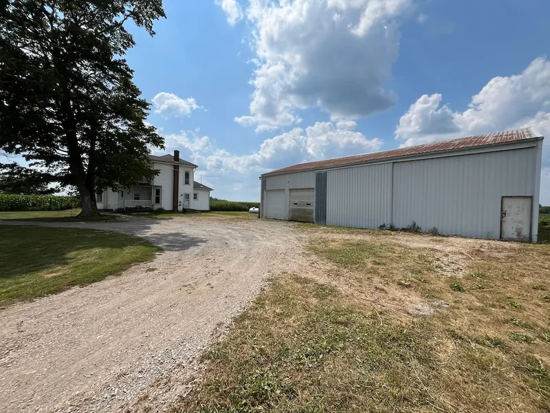Nestled amidst the flat agricultural fields, this charming old farmhouse stands as a testament to time, brimming with character and stories untold. The house exudes a warmth and coziness, as if every creak of its floorboards and each sunbeam streaming through its windows is whispering tales of yesteryears. Inside, the original trim is cased around the doorways and windows. The kitchen and bathroom are in need of work but are functional. The living spaces are generous, offering ample room for gatherings, whether it's a lively family dinner or a quiet evening on the front porch. Despite its age, this farmhouse has plenty of life left in it. The roof is halfway through its life and holding strong. The carpet is dated but covers up the original hardwood flooring from when it was built. The barn offers endless opportunitieswhether needing a workshop or simply a place to store tools and equipment. This farmhouse isn't just a house; it's a home with a soul. It's ready to welcome a new family, to continue its story, and to create new memories that will be cherished for generations to come. The property is being offered ''AS IS''; any inspections are welcome at the buyer's expense. The property will be surveyed at the Seller's expense once a contract is executed; the lines on the aerial pictures are approximate. The line goes through the barn; that picture isn't current. The Sellers tore down part of the old barn, and the line reflects where it will be nowtaxes to be determined after the survey.