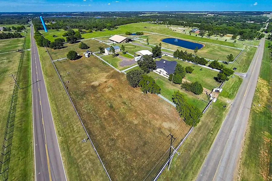 The exceptional 10,000 sq. ft. custom steel horse barn includes: Pull-through barn design, "Rocking J Equine" wood and metal horse stalls with feed bins, turn-outs and many custom features and accents. Rocking J horse stalls are all-welded construction with bars that are 2" apart. All wood edges are covered by 12 gauge U-channel to prevent cribbing and protect the wood, completely pre-galvanized to prevent rust damage from moisture and powder coated in black. Barn also includes, 2 storm shelters, tack-room, wash-room, & hay-storage.