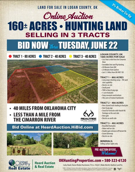 W2, NE4, Section 26, Township 17N, Range 01E, Logan County, Oklahoma, approximately 80 acres
