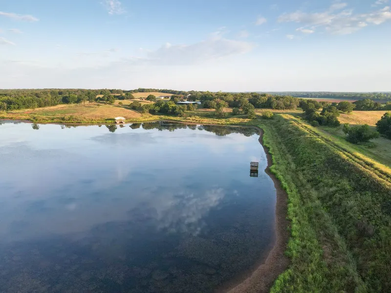 This is the Dante Deo Ranch located in Wellston, OK just 30 minutes from Edmond. It is a true rarity to find a tract of this size with all of its amazing features so close to the OKC metro area. The jewel of these features is the 27 acre watershed lake complete with a boat dock. The lake provides year round fishing, fall and winter duck hunting and tons more recreation opportunities. As you know, a lake of this size and this close to the metro is a true rarity. There are 3 fully functioning water wells on the property that conveniently provide water to most of the structures throughout. As for the hunting, there is nothing better in this location of Oklahoma. There are pigs, turkeys, small game, and of course, plenty of deer. With 2 elevated blinds and feeders already on site the deer hunting is truly turn key. There are plenty of cleared and mowed trails make getting around this propert...