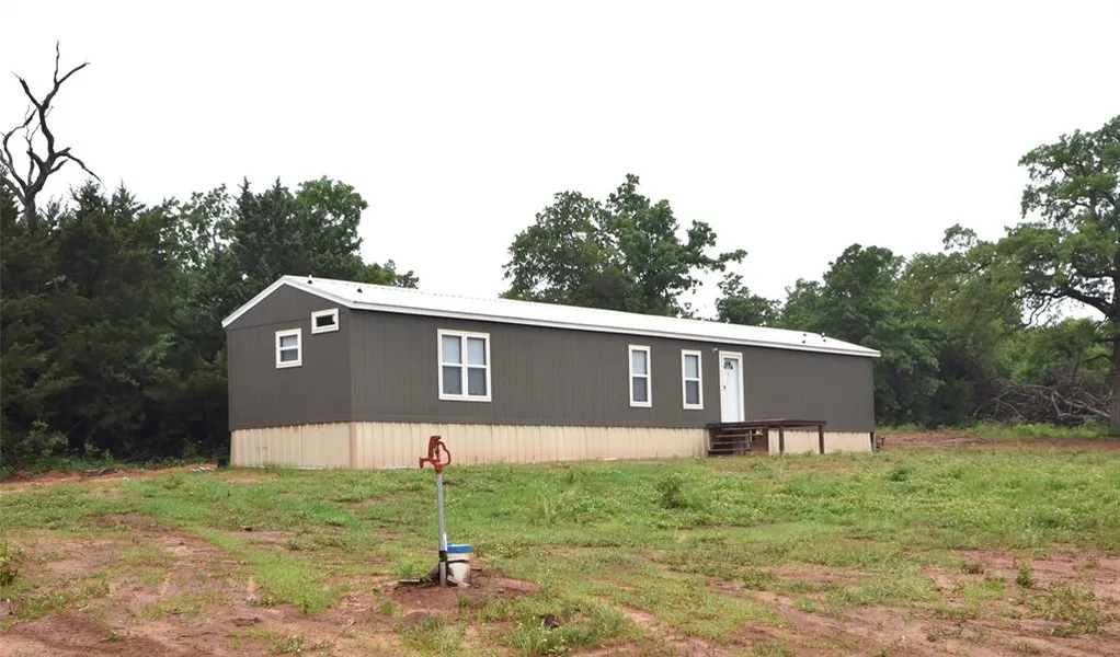 WITHIN 5 MINUTES OF I-35!!! Brand new mobile placed on land with new well and aerobic system with total electric & phone service. The two acres reflects a sloping and high elevation from south to north offering scenic views. Land is partially fenced and driveway area is gravel. The 3 bedroom 2 bath lay-out is divided with a utility/pantry area. The kitchen exhibits a center island with dining area into the living room. Home has tie downs and piers required for safety, your insurance and lender needs. Home is 76' X 16'. Although this home is within the Logan Hills Addition, it is so situated at the NE corner of the development and has its' own entry - so it may be excluded from HOA dues - trying to obtain in writing. However HOA has not been initiated as of this time.