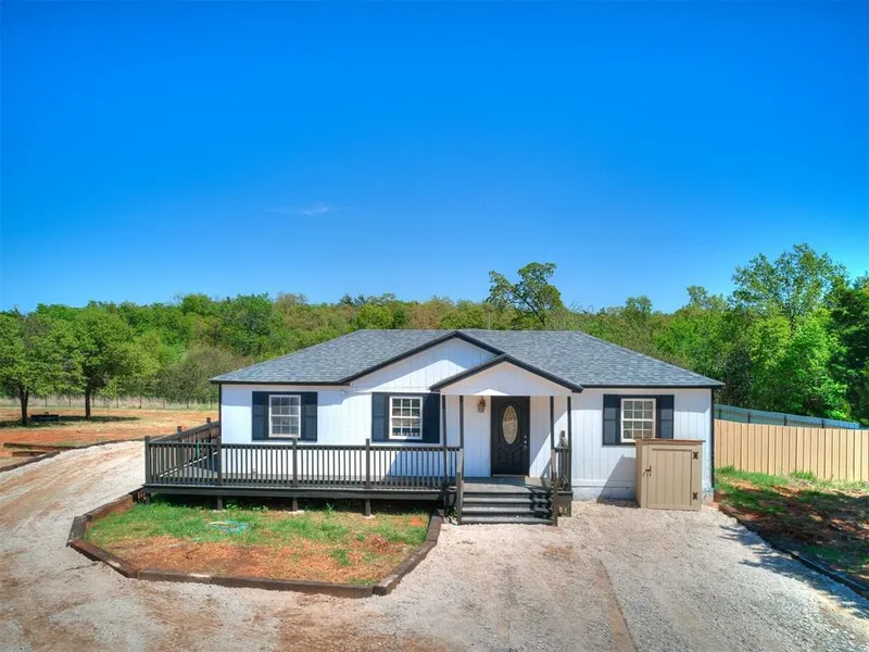 Just listed in Guthrie, don't miss this one! Remodeled 3-bedroom, 2-bathroom home with a detached 2 car garage on a prime corner acre lot. A bright, open floor plan centers on a chef's kitchen with brand-new stainless appliances and an oversized butcher-block island. Home features ample windows that fill every room with natural light. Both bathrooms are fully updated—one with a classic clawfoot tub, the other with a modern shower. Sliding doors open to an expansive deck overlooking the yard. New roof & many other updates in 2025. Move in ready! Schedule your showing today.