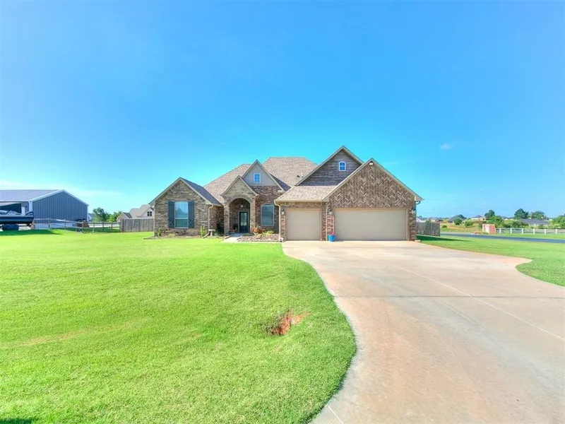 Located just outside city limits on nearly an acre in the quiet Summit neighborhood, this 4-bed, 3-bath home has a great layout and a long list of recent updates and features. New carpet runs throughout the entire home, and all countertops—including bathrooms—have granite. The kitchen is open to the living and dining area, with plenty of natural light. The secondary bedrooms are connected by a Jack-and-Jill bathroom, and there’s a dedicated mudroom with a separate laundry area. The primary suite includes a Jacuzzi tub, double vanities, and a walk-in closet. There's also a large, floored attic for extra storage. The backyard is fully enclosed with a picket fence, both the front and back yards have bricked flowerbeds with a sprinkler system and the back porch has an amazing view of the sunsets that only Oklahoma can create. There's also an above-ground pool for summer days. A full security...