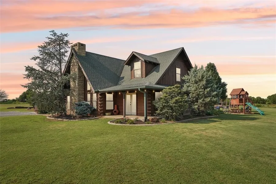 Back on market at no fault of the seller. Brand New Roof! Welcome to your dream log cabin retreat on 3 beautifully landscaped acres with easy access off S Coltrane Rd and a pool! Bring your animals and call it home! No rough country roads and just a 30 min drive to downtown OKC. This move-in ready home features 4 bedrooms and 3.5 baths, offering a perfect layout for both comfort and privacy. The primary suite is located on the main level and boasts his and hers closets, dual vanities, free standing tub, and a walk-in shower. A second downstairs bedroom and half bath are ideal for guests or office space.