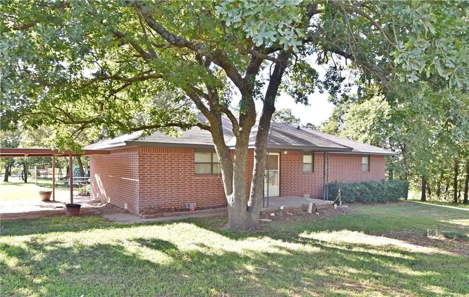 A great setting 1.12 Acres, groomed with outbuilding/shop. Home in excellent move-in condition. Open floor plan 1,404 sf mol with 3 bedrooms and 2 baths. 2-car Carport attached to home, great back patio, and an in-ground storm shelter just north of back patio. Air conditioning and well pump both replaced in 2017. Reserving windmill, bird baths and items that are free standing. This is priced to sell and is a super offering.