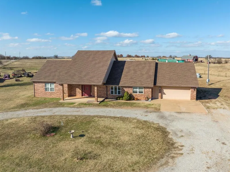 Cattle Operation Set to Go! There is are two outbuildings (each 18" X 32') with Window CH&A units, three loafing sheds, one portable shed and an additional two story house of approx. 1000 sf (needs remodeled). There is a propane generator and kitchen stove, central heat unit and hot water tank operate from propane. There is a windmill and two water wells on the land. Second water well has a pump in the well house for emergency needs. All the cattle shoots/pens and fencing stay with sale. The home offers a great set-up with a very large living/dining/kitchen area for large gatherings. There is also a wood burning stove. There is one bedroom to the north end with the utility room and pantry (great for your office). The south side offers the massive master bedroom with bathtub & shower and the third bedroom is at the SW corner. Floor plan offers maximum use of square footage. Granite counte...