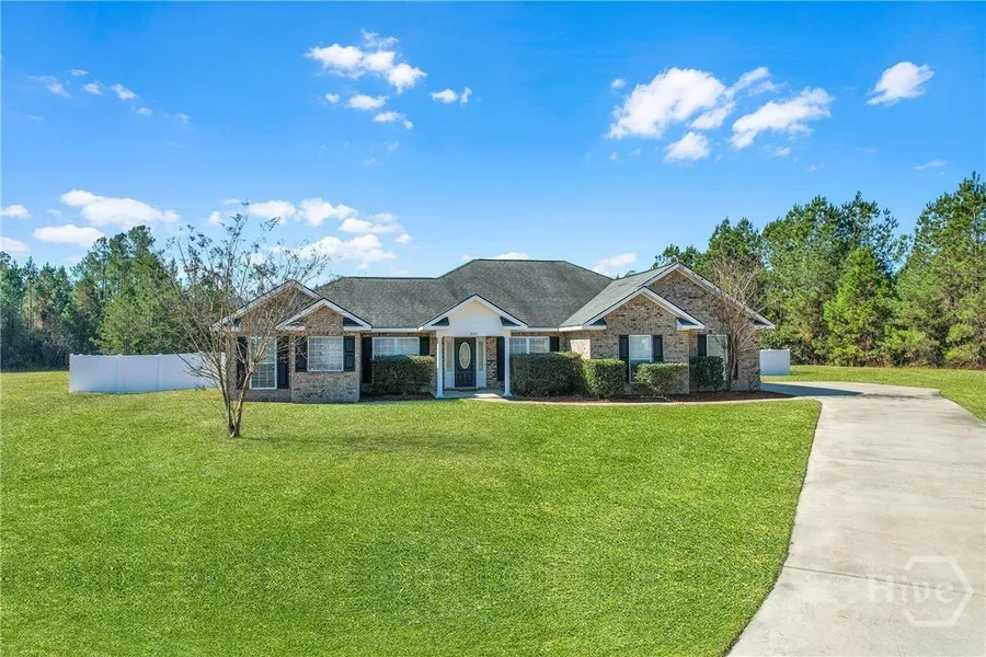 OVER 4 ACRES!! Beautiful 1-story brick home featuring 4 bedrooms, 3 full baths, and 2,072 sq ft located on a quiet cul-de-sac in Ludowici. This spacious layout offers hardwood flooring in the main living area, tile in wet spaces, crown molding, tray ceilings, and detailed trim throughout. New carpet in the bedrooms! The kitchen features spacious countertops, stainless appliances, custom cabinetry, and bar seating that opens to a bright dining area with large windows. The owner's suite includes dual vanities, soaking tub, and separate shower. Step outside to a screened-in porch overlooking the huge, fully fenced backyard. Dedicated laundry room and ample storage throughout. NEW AC. Approximately 4.79 acres... all yours.