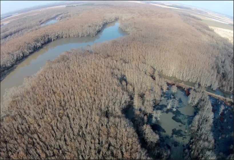 The property consists of 1,000.0 (+/-) total acres comprised of hardwood timber, cypress and tupelo forest, Conservation Reserve Program (CRP) land, five (5) lakes, and lodge grounds. The land is divided by Bayou Two-Prairie and Belcher Lake. The west side of the property offers two (2) lakes offering excellent fishing. Upland hardwood timber, CRP, and a pine plantation are located on the west side of the property offering hunting for deer, turkey, and small game. Belcher Lake is a beautiful setting with old cypress and tupelo surrounding the lake. Duck hunting is via large floating and permanent blinds on the edge and pockets of the lake. The lodge is very nostalgic and reminiscent of the 1920s and 30s and is located on the east side of the property and access to the west side and Belcher Lake is easily done by boat from the lodge grounds.