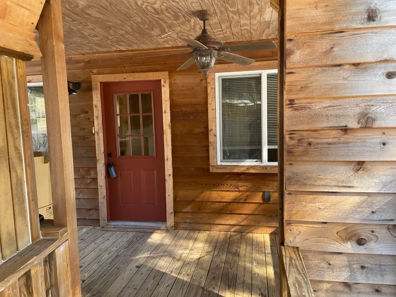 Rustic One/half story home, Open concept kitchen to Living area. Custom Oak cabinets throughout. Primary Suite on first floor carpeted with large walk-in closet, bath with shower double sinks, opens to private deck. Up the stairs are custom cypress wood kick boards, two spacious bedrooms with nice closets and full bath upstairs. Free standing man cave in backyard. Price includes new stainless steel appliances in kitchen. Room for a garden, fenced in pet pen and room for kids to roam. Get your piece of Country living today!