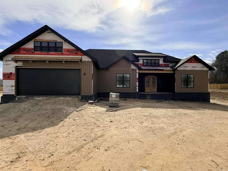 This modern new construction home is in the early stages of building and is dry and easy to show. Designed with an expansive open-concept layout, the living room, kitchen, and dining area flow seamlessly together. A large waterfall island anchors the space, complemented by a striking accent wall in the living room. Stone pendant lighting and a statement wood chandelier add warmth and architectural interest throughout. The split floor plan offers privacy and functionality, along with a convenient half bath for guests. The primary suite feels truly spa-like, featuring a stunning tiled walk-in shower, soaker tub, dual vanities with knee space, and an oversized closet complete with built-in dressers. This home offers flexible living options—either a four-bedroom layout or three bedrooms with a dedicated office. Additional highlights include a butler’s pantry, a functional locker/drop zone ...