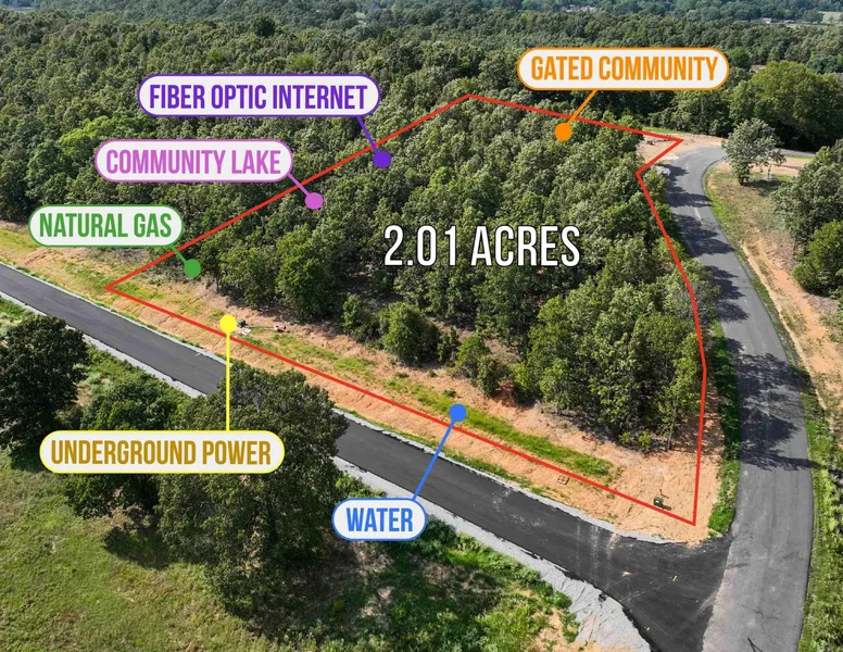 Gated wooded community with two entrances, underground power, water, natural gas and fiber optic internet. Community lake. Restricted to site built homes, 1850+ sq ft, no mandatory builder nor time to build.