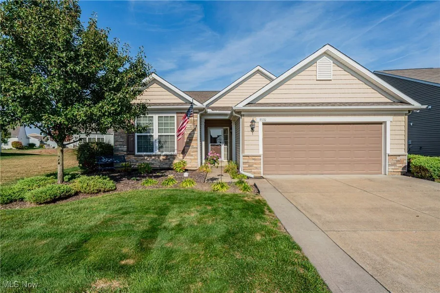 Enjoy the perfect mix of comfort, convenience, and active living in this beautiful ranch home. The open floor plan offers easy one-level living, starting with a spacious kitchen featuring granite countertops, hardwood flooring, a large island with seating, plenty of cabinet space, and a pantry. The primary suite includes a generous walk-in closet, while the private bath offers double sinks and a walk-in shower. A versatile extra room makes a great office, guest space, or reading nook. The living room is warm and inviting with a gas fireplace, complemented by an additional sitting room that opens to the back patio-ideal for relaxing or entertaining. The home also includes a convenient laundry room with newer washer and dryer, and a tandem three-car garage with built-in shelving. Recent updates include a brand-new roof, updated furnace, and newer hot water tank for peace of mind. Set on a rare double lot with no future build directly next door, this property offers added privacy while being just a short walk from the community clubhouse. Pioneer Ridge residents enjoy resort-style amenities including a pool, pickleball and bocce courts, a fitness center, and a full activities calendar with events, trips, and programs. This is a rare opportunity to own in Northeast Ohio's premier 55+ community.
