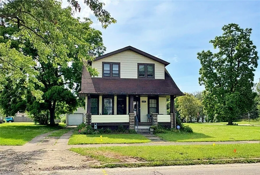 Located in Elyria, this charming two-story home sits on over half an acre spread across four separate parcels, offering plenty of room to build or expand. The home features 3 bedrooms and 1.5 bathrooms, with a full basement that can be finished to add even more living space. A spacious detached building provides flexible use as a garage, workshop, or extra storage. Enjoy relaxing on the large front porch, perfect for morning coffee or evening gatherings. The generous lot size offers endless possibilities for outdoor living, gardening, or future development. This unique property combines space, potential, and convenience in a quiet residential setting.