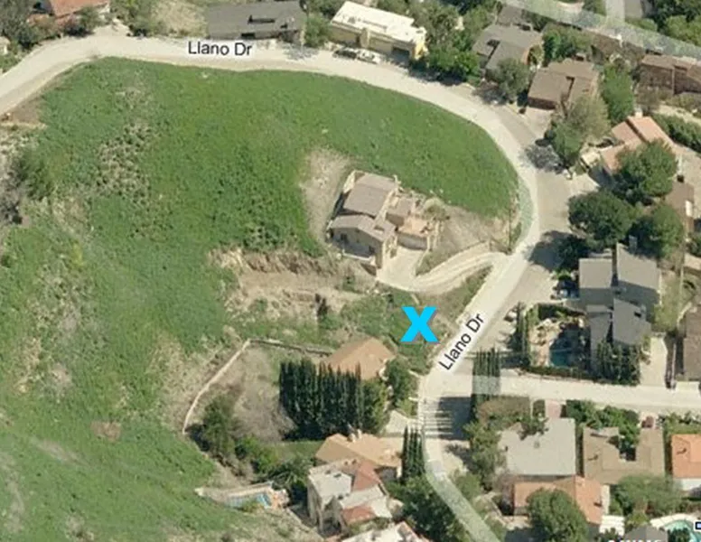 Driving Directions: From Hwy 101, take the Topanga Canyon Blvd exit 27B. Take Topanga Canyon Blvd South. Turn right on De la Osa St. Turn right on Clavel Ct. The parcel is on Llano Dr at the intersection of Llano and Clavel. It is between the houses at 5057 and 5059 Llano. Take an aerial map.