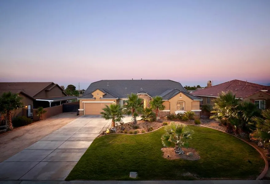Beautiful Move In Ready Single Story Estate w/ A 3 Car Garage, R.V. Access, And A HUGE Near Half Acre Lot On A Quiet Cul-de-sac! No HOA & NO Mello-Roos. Fully Landscaped Front and Backyard, Block Walls, Custom Wrought Iron Entry Gate, A Covered Patio, Wood Flooring, Two Zone Heat & A/C and Decorative Fans. The Spacious Kitchen Showcases Granite Counters, Stainless Steel Appliances, A Center Island w/ An Overlap for Bar Stools, Plenty Of Cabinetry, and a Double Oven. The Family Room Features A Ceiling Fan, Built In Entertainment System, And A Fireplace. The Master Suite Is Large And Offers A Master Bath w/ Duel Sinks, Walk-in Closet and a Separate Tub and Shower.