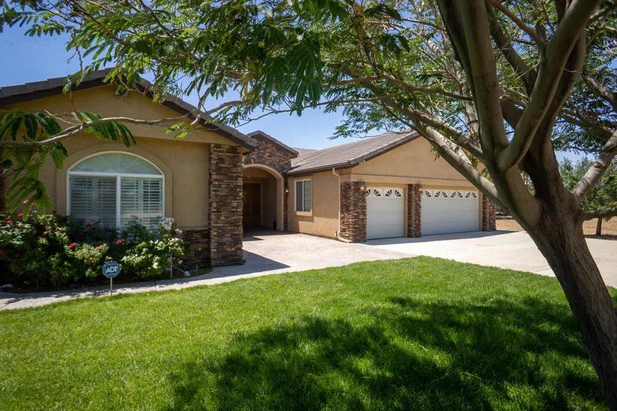 Gorgeous custom home with quality high end upgrades! Entry offers large custom tile flooring, open and spacious floor plan including a den which could be used as a fourth bedroom, vaulted ceilings, custom shutters, water filtration system, a beautiful stone fireplace for those cold winter nights, and a custom builtin audio system for pleasant music throughout. The kitchen is guaranteed to impress with all upgraded Kitchenaid stainless steal appliances including a double oven, a dual compartment dishwasher, and a trash compactor. Cherry wood cabinetry, granite counter tops, and custom tile back splash. The Family room and Master suite both offer sliding doors to the patio. The Master bath offers dual high end faucets, a large jetted bath, custom tile shower, and a walk in closet. Plenty of space to entertain with a full length covered patio, a relaxing water fountain, and stone seating. Mature peach, apricots, and nut trees, fenced off sections, and two bird/storage sheds. Call today!!