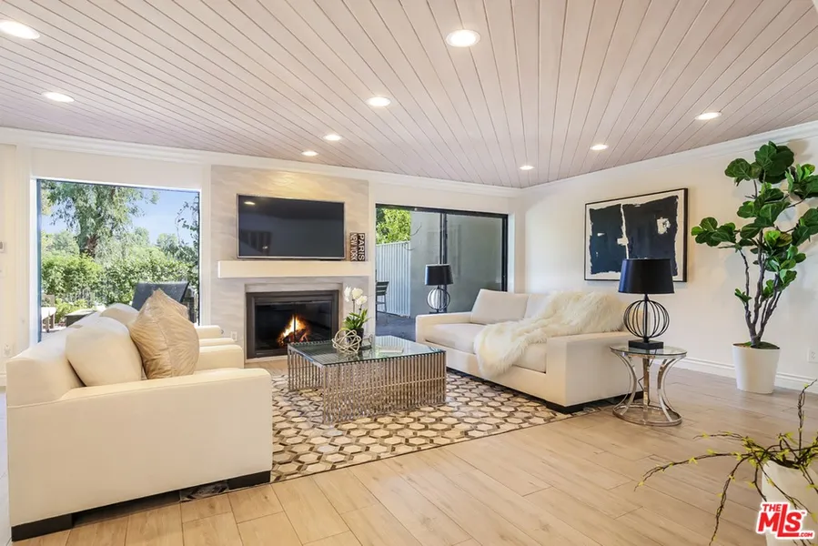 Gorgeous modern townhome in coveted Bel Air Ridge! Enter through the private, gated courtyard to the open, sun-lit home with over 2800 sq. ft. Bright kitchen with an eat-in breakfast area and floor to ceiling windows. Spacious dining area flows to a large living room with a fireplace and large glass sliding doors that open seamlessly to the serene backyard with gorgeous views, perfect for indoor/outdoor dining and entertaining. Upstairs includes a romantic main bedroom with vaulted ceilings, huge walk-in closet and an updated en-suite bathroom. There are 3 more bedrooms upstairs and a remodeled bathroom. Home includes a fantastic family room w built-in bar, powder room & separate laundry room. Enjoy resort style living with 2 pools, spa, 7 tennis courts, gym, racquetball & 24/7 security patrol. Located in the highly rated Roscomare Road school district & close to the Glen Center restaurants and shops.