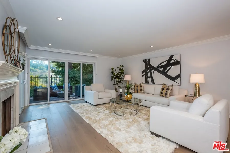 Spectacular canyon VIEW dream townhome in sought-after Bel Air Ridge! Boasting over 3000 sq. ft. with four bedrooms plus a fifth bonus room! Flooded with natural light, this home welcomes you w lots of windows & gorgeous, brand new, wide planked hardwood floors. Chefs kitchen with a large breakfast area opens seamlessly to the family room and landscaped, private backyard, perfect for al fresco dining. Entertain family & friends in the HUGE, chic dining room. The sensational primary suite has incredible views, a romantic fireplace and balcony. Upstairs includes three additional large bedrooms & a beautiful bathroom. Resort style living w exclusive use of the gym, pools, spa, tennis courts, clubhouse & 24/7 security patrol. Located in the highly rated Roscomare Rd school district. Close to the Glen Center restaurants & shops. This is the home & lifestyle that has it all!
