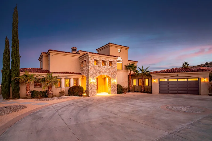 AMAZING PRIVATE ESTATE w/HEARTSTOPPING VIEW! Gorgeous in every detail. Tuscan Style, Iron Gated Entry, Stone Accents, Main House 4340sf (4Bdrm/3.5Bth) plus detached 2nd Garage w/ Studio & 3/4 Bath 959sf above. Enter your Villa thru Distressed Wood Door w/ sidelights & See Forever! Windows all around. Great Room Feel separated by 2Sided Stone Fireplace. Wetbar for Entertaining. Dream Kitchen! Large Center Island. 6 Burner Professional Range, Dual Ovens, Warming Drawer, Subzero Fridge, Walkin Pantry. Large Formal Dining Room. Master Suite w/ Custom Walkin Closet, Large Windows & Balcony to enjoy the City View. 2nd Private Suite downstairs w/ EnSuite Bath & Walkin Closet. Travertine Flooring in most of house, Rich Marble Stairs. Plantation Shutters thruout. Rich Detail wherever you look! Made to Entertain w/ Covered Patio around Back, Beach Entry Infinity Pool/Spa w/ Outdoor Shower, BBQ, Bar & Pizza Oven. Lovely Easy Maintenance Landscaping. Paved/Covered RV Parking. Private yet close in.
