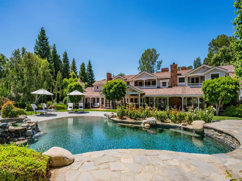 ONCE IN A LIFETIME THE MOST UNIMAGINABLE HOUSE COMES ON THE MARKET ..and this is the one..Hidden Hills most ICONIC Property! This showpiece home has been transformed into a modern-transitional feel where impressive designer touches have been captured in every room of the house! The Main House has "Rooms for All Reasons"..there are five bedrooms, ten bathrooms, an enormous kitchen with commercial grade range, convection ovens, pastry station, huge "walk-through" pantry and coffee station. There are also two offices, a game room, mud room, gift wrap room, library/study and play room. The entertainment/media area has a 13-seat theater, billiards room, 350 bottle refrigerated wine room and candy counter. Upstairs, the primary bedroom is complete with a recessed sitting area, tranquil patio overlooking the beautiful grounds, two walk-in closets, an exquisite bathroom with dual vanity areas, j...