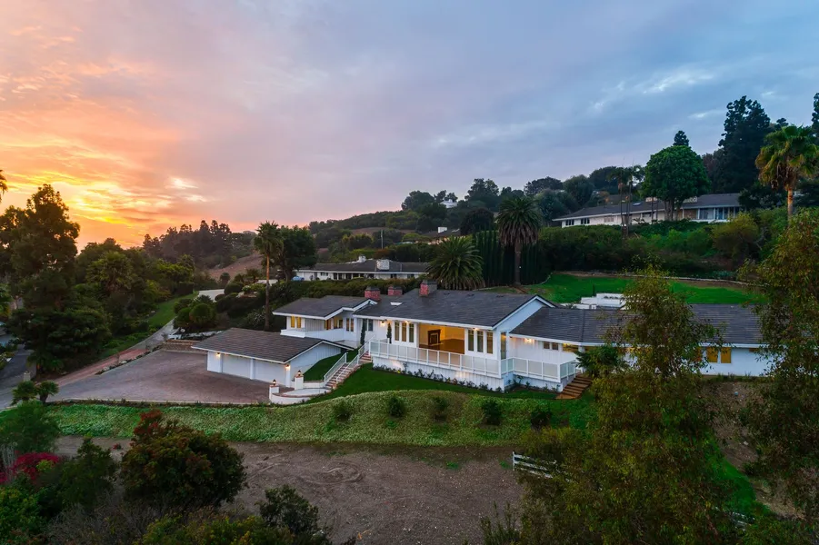 NEW CONSTRUCTION! With 5 bedrooms, 2 offices, and 8 bathrooms, this custom-built, ranch style home boasts high-end finishes throughout. Master suite occupies the east wing off the entry while an additional 3 ensuites sit on the opposite end of the first floor. An expansive great room with vaulted, 20ft ceilings overlooks panoramic views of Los Angeles. Downstairs includes a full wet bar, classic style movie theater, 1000+ bottle wine cellar, private ensuite and elevator. Living is made simple with fully-integrated, Crestron home automation system that includes security cameras, alarm system, pool and spa controls, entertainment controls and more. Situated on 1.22 acres, exterior features include outdoor kitchen, herb garden, pool and spa, firepit, BBQ, Pizza Oven, and citrus orchard. All information is deemed reliable but not guaranteed, BTV. These notices are the rules of entry per CA r...
