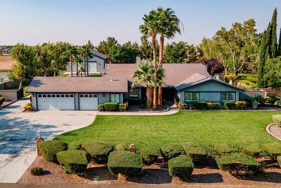 SINGLE STORY CUSTOM HOME**INGROUND POOL/SPA**2000sf WORKSHOP w/ 2 ROLL UP DOORS & on almost an ACRE. Lovely Custom Home w/ Electric Entry Gate & Block Walls around. Brick Accents to Double Entry Doors. Formal Living/Dining Rooms great for entertaining. Cozy Fireplaces in LR & Family Room which is adjacent to Kitchen. Kitchen features Stainless Appliances, Nook & Breakfast Bar. Master Suite w/ Sitting Area also w/ Fireplace. Luxurious Remodeled Master Bath w/ Dual Sinks, Vanity, Rich Granite, Oversized Multi Head Shower, Separate Spa Tub. Hall Bath w/ 2 Separate Sink Areas. Plantation Shutters thruout, Lovely Wood Flooring & Accents. Laundry Room w/ Sink/Cabinets. 3 Car Oversized Garage w/ Pool Shower. Massive Covered Patio across back of house w/ Builtin Brick BBQ, TV. Huge Inground Pool/Spa w/ Electric Cover. Firepit, Fountain. Lots of Grass/Lush Landscaping. Orchard. Plus 2000sf Shop/RV Garage w/ 220 Electric, Metal-Halide Lights, Paved Driveway from Street. Don't Miss This One!