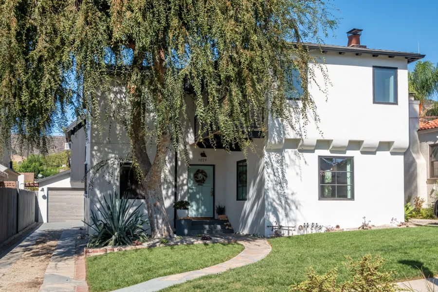 North of Colorado Blvd in Eagle Rock, this updated and modernized Spanish style 3BD/3BA home is just a few short blocks from Eagle Rock Park, Found Coffee, Little Beast, and Cindys. Re-imagined in 2017, 1279 Eagle Vista has been expanded with multiple living areas downstairs, a rear ADU (above the 2-car garage), a separate office, a mud room, and all bedrooms upstairs. Classic arched doorways and beamed ceilings compliment the newer windows, newer wood floors, and a modern kitchen with a large marble-topped island and matching counters. Also updated are the HVAC, roof, plumbing, and electrical complete with a 200 amp panel. This well thought-out floor plan is a hybrid of modern-and-traditional combining openness, classic features, and warmth.