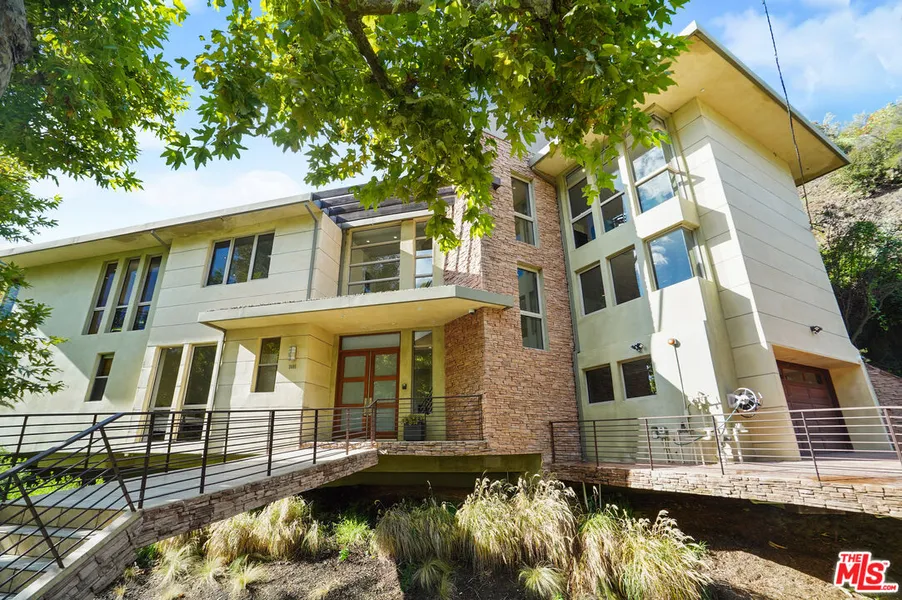 Contemporary three-story estate located in a lush private setting in coveted Mandeville Canyon. Amazing open floor plan with high ceilings and walls of glass that open to the serene backyard so you can enjoy indoor-outdoor living. The first level includes 2 ensuite bedrooms. The Second level has the grand living room, seamlessly flowing into a large gourmet kitchen, with all updated appliances, dining area and family room. The primary suite is on its own level with a perfectly positioned stone patio and an observation deck overlooking the pool and the surrounding beautiful canyon. The two-car garage is attached with direct access and has plenty of storage space. A magical oasis, just minutes from the city.