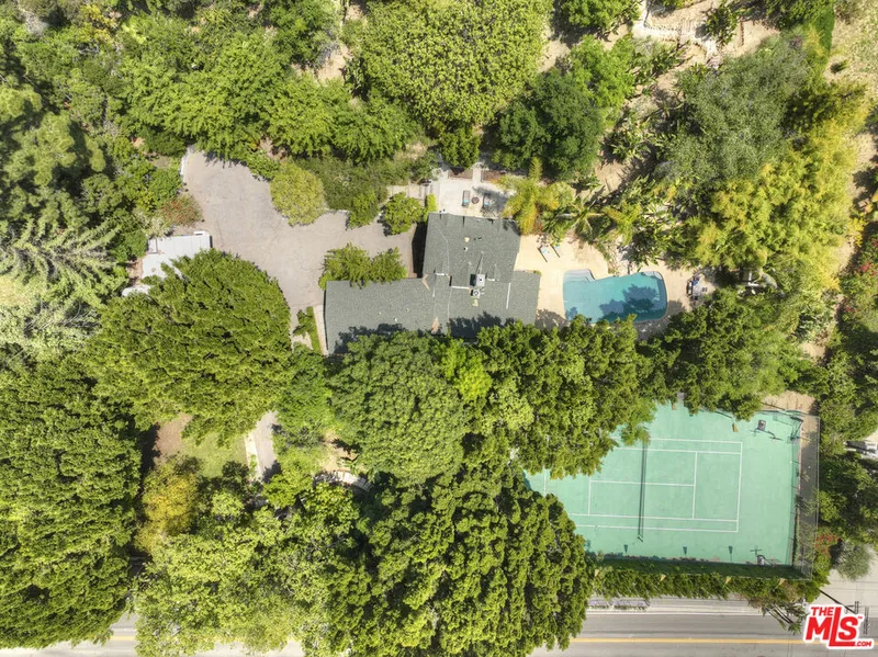 Up a long private driveway and behind gates. 1.5 acres (65,499 sq ft) of park-like resort grounds with full sized tennis court, pool, spa/grotto/sauna and endless possibilities. Located on the world renowned celebrity row of Benedict Canyon. Easy turn key 2,698 sq ft 3 + 3 house with detached 299 sq ft 1+1 guest house and two car garage. Open great room kitchen, family room, Formal Dining, Living room, all public rooms open to a sunny south and west facing yard. Large parking court for numerous cars. Privacy throughout the property. This is an opportunity to live comfortably in a remodeled home on an enormous private mature landscaped lot. OR. Develop one day and build an estate comparable to other properties nearby listed/ selling above $40M.