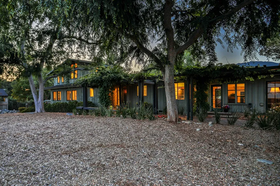 Magnificent Everett Tozier architect designed Claremont estate. A triumph of style and a rare find in a special, secluded location near the Claremont foothills with spectacular mountain views. Greene & Greene, Craftsman bungalow style elements are seen throughout, including wide overhanging eaves, rafter tails, and a unifying pergola. Experience the ultimate rural lifestyle - a unique one-of-a-kind property that's resting peacefully on private, tranquil grounds of over 1 acre in a picturesque setting. The light filled floor plan features an inviting living room and dining room with striking wood floors. The kitchen includes an eating area which opens to the spacious dining room with its vaulted wood beamed ceiling. The study, with a desk and fireplace, is flooded with natural light and has ample room for bookshelves. The large family entertainment room features an impressive cathedral style wood beamed ceiling, fireplace, ample storage cabinetry, and French doors looking out to the front yard. Three downstairs bedrooms have beautiful outdoor views and one can conveniently be used as guest quarters, with a large private patio deck and room for a kitchenette. The indoor laundry area is located near the downstairs bedrooms. The primary master suite, with its vaulted wood ceiling, occupies the entire second story and includes a bathroom, spacious closet areas, and a covered balcony, overlooking the vast property to the north. Picturesque grounds include a large carport, and a large workshop/hobby room. Sited on an expansive lot with plenty of room for a guest house, ADU, additional structures, tennis court, etc. Enjoy the relaxing water feature with a fountain and professionally designed hardscaping that harmonizes with the rural surroundings. The house is located on approximately 1.08 acres of native wilderness and citrus, along with professional landscaping. Zoned for horses and other animals please check with the City of Claremont for detail). Coveted Chaparral Elementary School district. Be sure to check out the 3D virtual video tour.