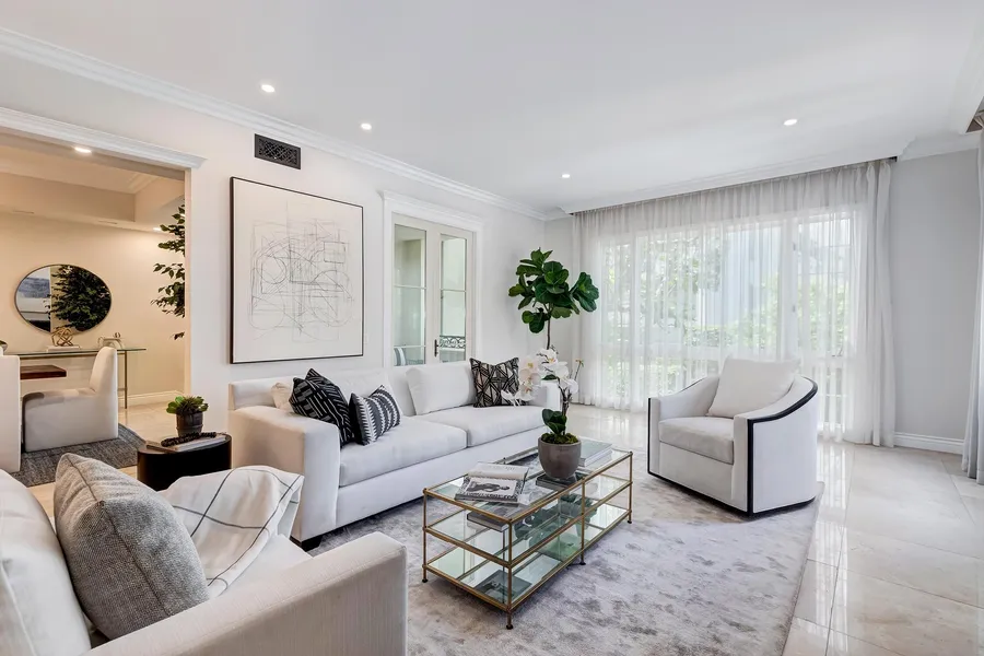Elegant & Grand sun filled home in Prestigious Le Parc in Century City. Designer done to perfection corner unit in desirable interior location. This remodeled classic style 2 bedroom offers marble flooring and stunning upgrades throughout. The elegant foyer announces your entry into the large living room & dining area with 10 foot ceilings, French doors, wet bar and marble fireplace. Rooms open to balcony w/views of tree tops & city lights. The gourmet kitchen features brand new top of the line appliances, rich granite countertops and new white cabinetry. Breakfast area opens to a private terrace. The lavish primary suite features hardwood floors, custom built-ins and a gorgeous marble bath w/ freestanding tub & 2 walk in closets. A spacious second bedroom suite boasts marble bath. This sophisticated condo is like living in a private home, but w/ all of the amenities & security of world ...