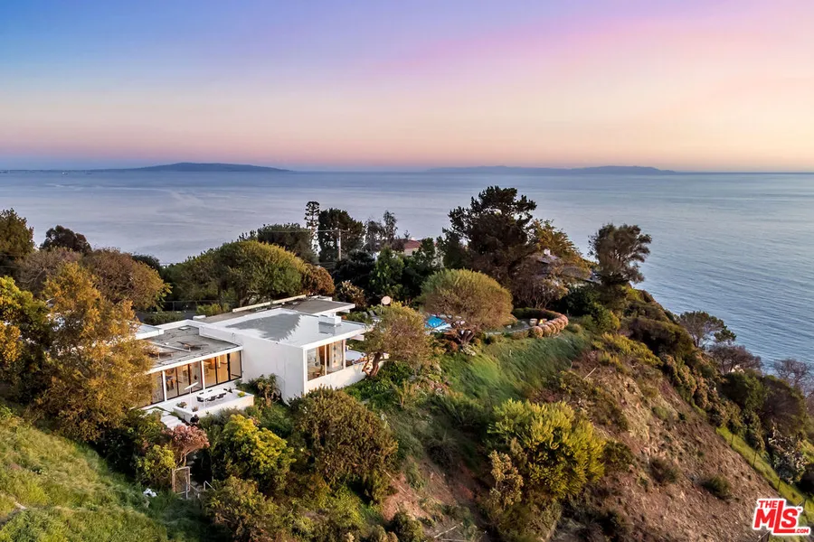 A true legacy property, the Eckhardt House is the one and only estate in Malibu designed by Robert Skinner, AIA. Nestled on approximately three acres, this mid-century architectural masterpiece was preserved and meticulously restored by Maison d'Artiste, whose team was custodian of the property since acquiring it from the original owner. Flooded with natural light, the open flooplan and floor-to-ceiling windows showcase the magnificent panoramic ocean and coastline views from nearly every room. Multiple patios, exquisite gardens, terraced landscaping, and a perfectly-perched firepit create the ultimate entertainment atmosphere. Thoughtfully designed chef's kitchen with designer appliances and exquisite custom cabinetry opens to the dining area and sunken living room. The expansive primary suite with a walk-in closet and private sauna, opens out to the pool deck with endless ocean views. Tranquility awaits at this lushly landscaped piece of paradise located just minutes from Malibu's world-famous beaches, shops, and restaurants. The Eckhardt House is a true legacy property. Welcome home.