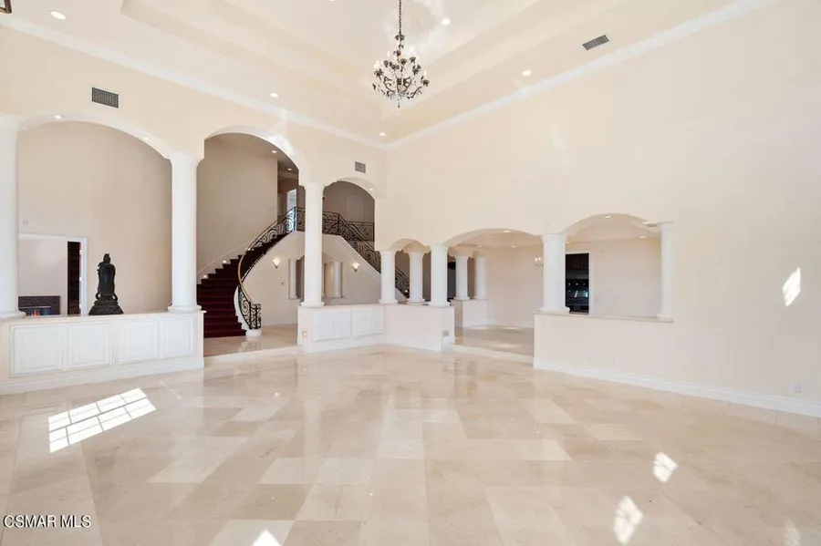 Welcome to your luxurious retreat sitting atop 5.3 private acres, offering unparalleled 360 degree VIEWS and privacy. This exquisite property, nestled within a small gated community, boasts an impressive 8,533 square feet of living space, providing ample room for relaxation and entertainment. In all, it features 5 bedrooms, 5 bathrooms and an epic office. As you approach this grand estate, you are greeted by an expansive courtyard that wraps around the front exterior. There is abundant parking outside PLUS an 8 car garage with several drive-through doors. Step inside to discover a residence designed with meticulous attention to detail. The home offers an impressive two story entry with a double entrance, Louvre-style custom wrought iron staircase and railings. The grandeur of the home is accentuated by grand pillars, classic arched windows and entryways with impressive proportions that a...