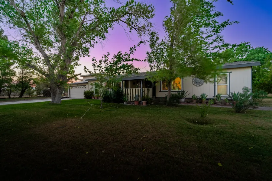 Peaceful property, located in Antelope Acres offering amazing views with over 10 plus fruit trees situated on over an acre. Single story detached garage with warehouse . RV storage garage includes three bays can easily double as a warehouse, ample room for large items, equipment, or inventory. Fully fenced with two additional outbuildings, plenty of space for animals. Well cared for home, open floor pan. Remodeled primary bathroom, upgraded windows, upgraded vinyl flooring. Neutral tone decor, comfortable size bedrooms, covered front porch, long driveway entrance. Easy access to freeway, and Antelope Acres conveniences . Come take a look!