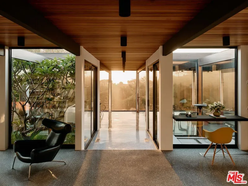 Introducing The Glass House by John Klopf, AIA, the midcentury modern masterwork of Malibu Park. Thoughtfully conceived within the natural landform on over half an acre, this newly constructed single-level residence is beautifully elevated above Zuma, offering blue-hued views of the Pacific Ocean and the earth-toned coastal mountains. An artfully composed blend of floor-to-ceiling glass, warm woods, and handsome, hand-poured terrazzo creates a paradisal, livable art piece. Beyond the saltwater pool and manicured yard, an outdoor sanctuary of impeccably curated landscaping unfolds, with a meandering pathway leading to a fire pit, sculpture garden, and pickleball court. Completing the estate is a secondary A-frame structure, offering versatile space for an office or gym. The Glass House provides a singular living experience, where every element is masterfully designed to inspire and elevat...