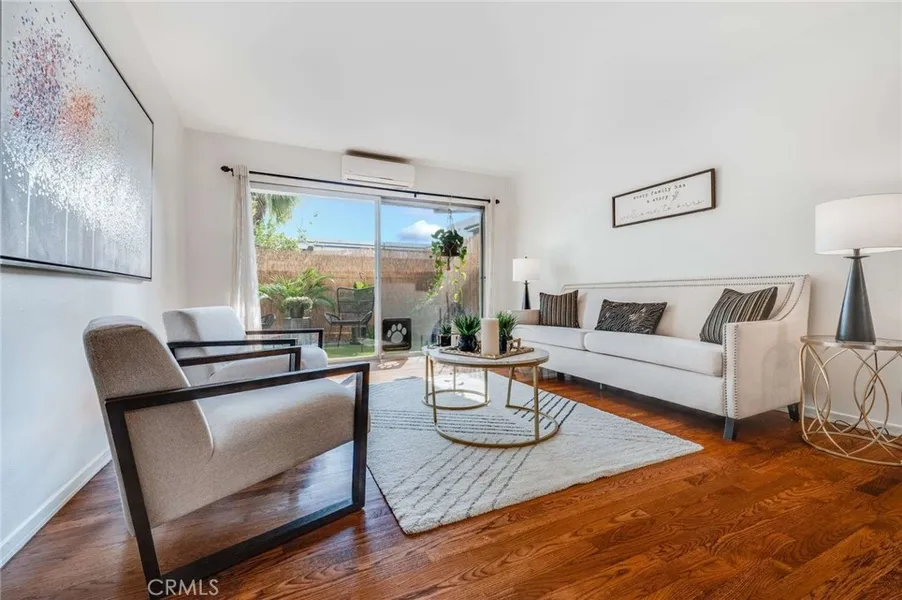 Experience the epitome of West LA living in this light and bright 1+1 unit. This ground-floor unit features an open floor plan with upgraded kitchen and hardwood floors throughout. The highlight is the tranquil south-facing private patio perfect for al fresco dining, gardening or simply relaxing. Pets like it, too! The unit features newer AC systems and upgraded windows for optimal comfort. Free laundry is provided, but the option to install your own is available. Lush, peaceful grounds feature a sparkling heated pool for those warm California days and a cozy rec room for your get togethers. With only 38 units in this gated community, you'll enjoy a close-knit atmosphere while maintaining your privacy. Additional storage closet and secure package delivery is available. This coveted location offers unparalleled convenience with easy access to award-winning Clover Elementary and all that West LA has to offer. Don't miss it!